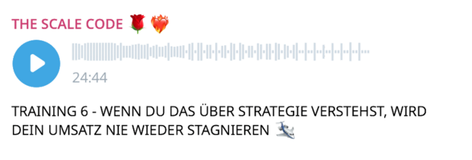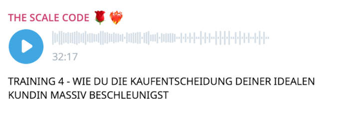 Genau das teile ich jetzt mit dir in The Scale Code, damit du selbst erlebst, wie sehr sich dein Leben und Business verändern, wenn du weißt, wie du deine Ergebnisse immer wieder duplizierst, ganz ohne Stress.
